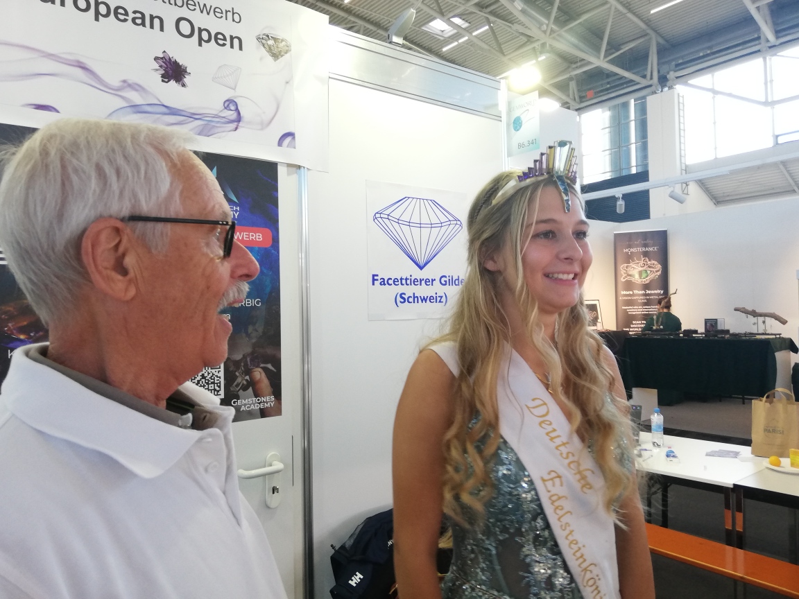 Es ist schon fast zu einer Tradition geworden, dass die Edelstein-Königin aus Idar-Oberstein uns die Ehre erweist und unseren Stand besucht und ebenfalls ihre Stimme für schöne Steine abgibt.